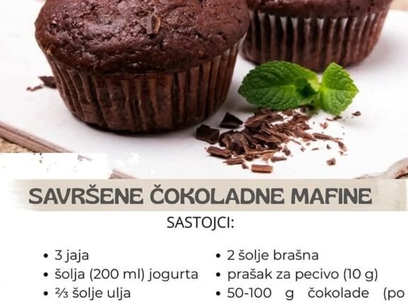 Naravno, evo recepta za savršene čokoladne mafine sa slike: SAVRŠENE ČOKOLADNE MAFINE SASTOJCI: 3 jaja * 1 šolja (200 ml) jogurta * ⅔ šolje ulja * 1 šolja… Read more »
