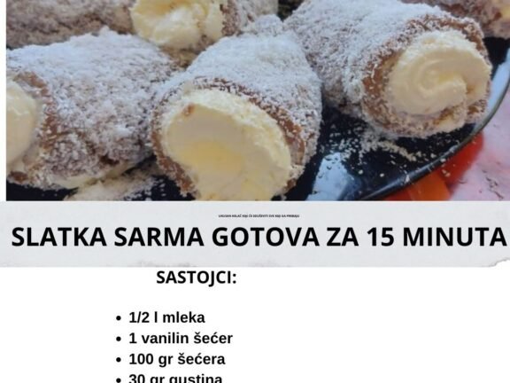 Predobro. Jako ukusno. Ko bi joj odoleo slatka sarma gotova za 15 min. Potrebno je: 1/2 l mleka 1 vanilin šećer 100 gr šećera 30 gr gustina 30 gr brašna… Read more »
