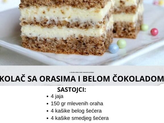 Predivna kombinacija korica od oraha i fila od bele čokolade. KOlač je fin pa može da bude i nedeljni, praznični, čak i jedna od vaših sitnih kolača. SASTOJCI: Kore: 4… Read more »