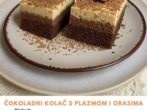 Sastojci: 200 g keksa,100 ml mleka,500 ml slatke pavlake,500 g maskarpone sira (može i krem sir),100 g šećera u prahu,150 g nutele,150 g bele čokolade.Za glazuru:150 g čokolade,45 ml ulja.Za… Read more »