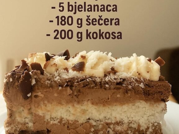 TORTA SEDMO NEBO. Bez trunke brašna, savršena… Sastojci Bijela kora: – 5 bjelanaca – 180 g šećera – 200 g kokosa Crna kora (materijal za 2 kore): – 8 bjelanaca… Read more »