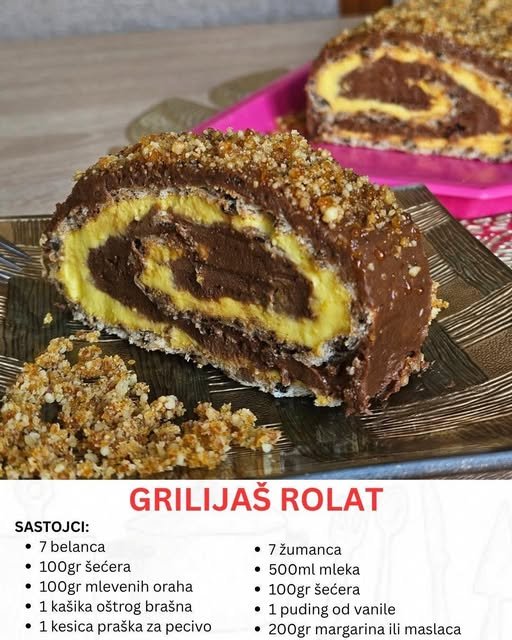 Ovaj neodoljivi rolat spaja sočne kore od belanaca sa kremastim filom od vanile i čokolade, dok ga hrskavi grilijaš sa karamelizovanim orasima podiže na potpuno novi nivo. Priprema je jednostavna, ali rezultat – pravo savršenstvo. Idealno je za sve koji uživaju u slatkim, ali i pomalo luksuznim poslasticama. Ovaj rolat je savršen za sve vrste proslava, ali i kao poslastica za svaki dan kad želite da uživate u nečemu specijalnom.