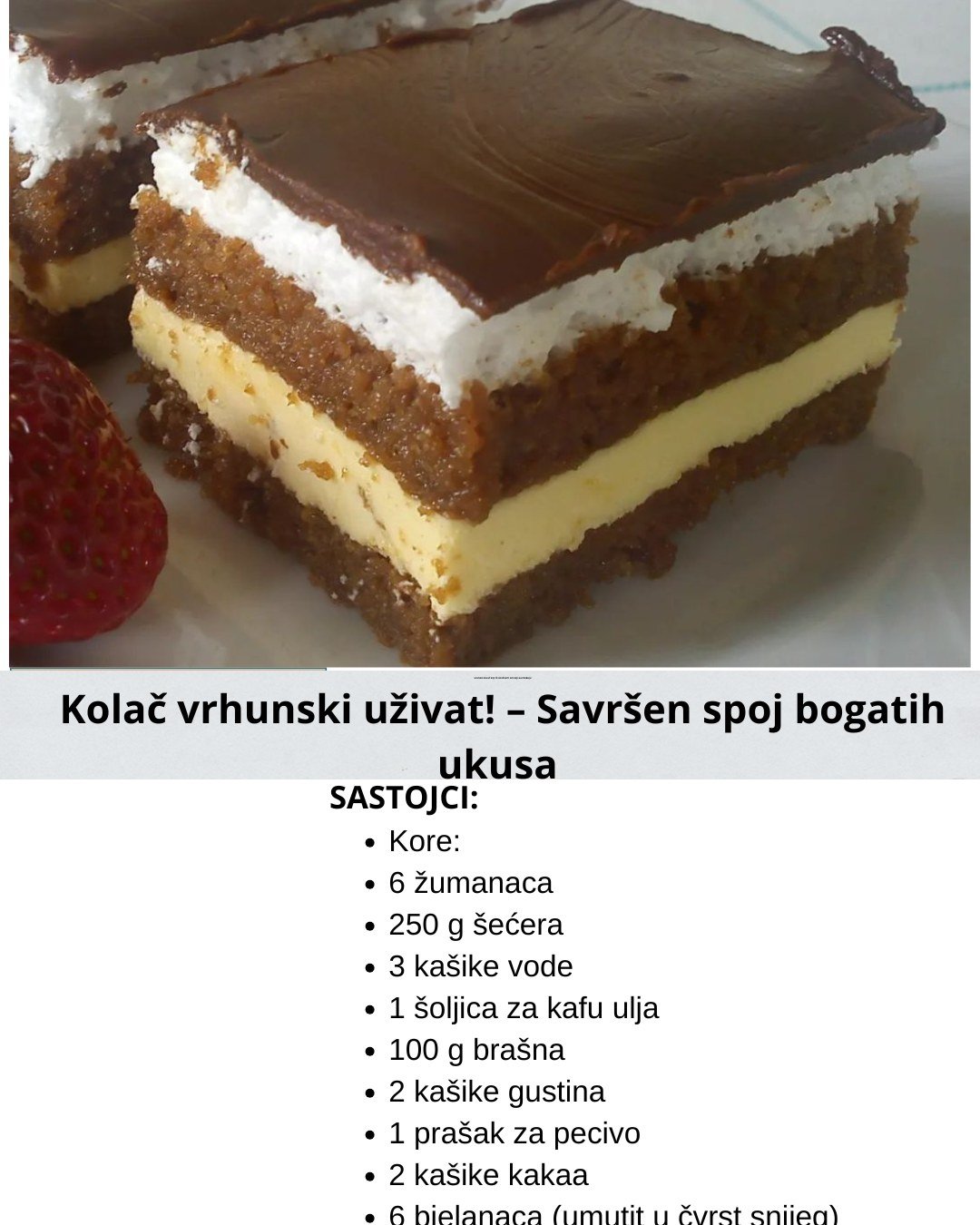 Pečeni kolač prerezati uzdužno na pola (mogu se ispeći i dvije kore posebno).