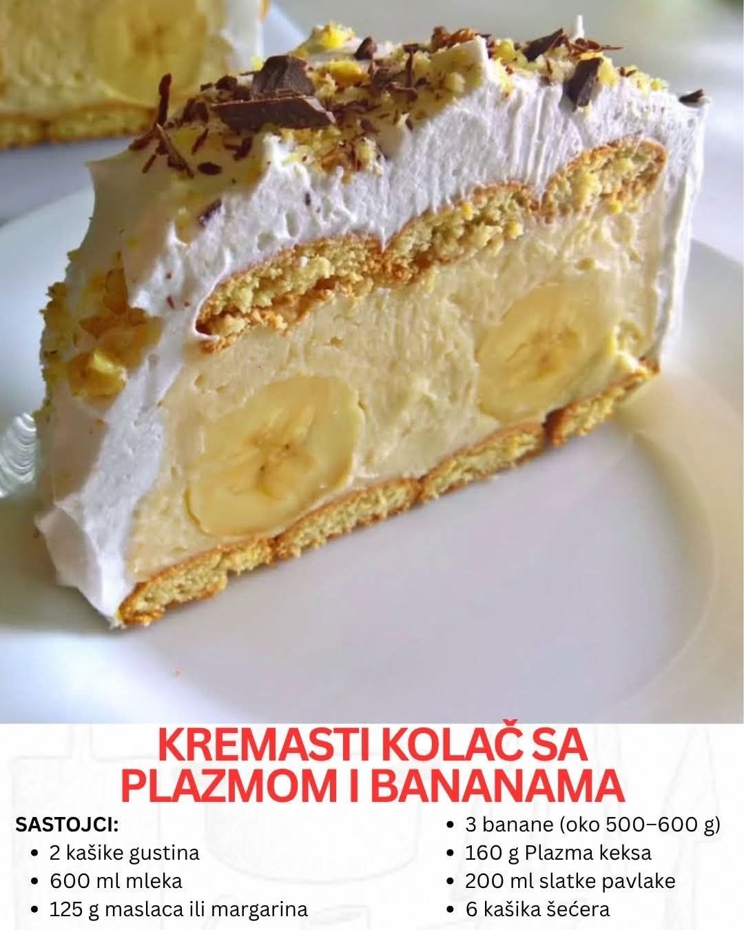 Ova poslastica ne samo da se priprema bez pečenja, već i spaja osvežavajući voćni ukus sa bogatim kremastim slojevima, što ga čini savršenim izborom za sve prilike – od nedeljnog ručka do rođendanskih proslava. U ovom receptu, banane su u harmoničnoj ravnoteži sa ukusnim filom i mekim Plazma keksom koji upija mleko i dodatne arome. Recept je jednostavan za praćenje, ne zahteva mnogo sastojaka, a rezultat je pravi vizuelni i ukusni užitak.