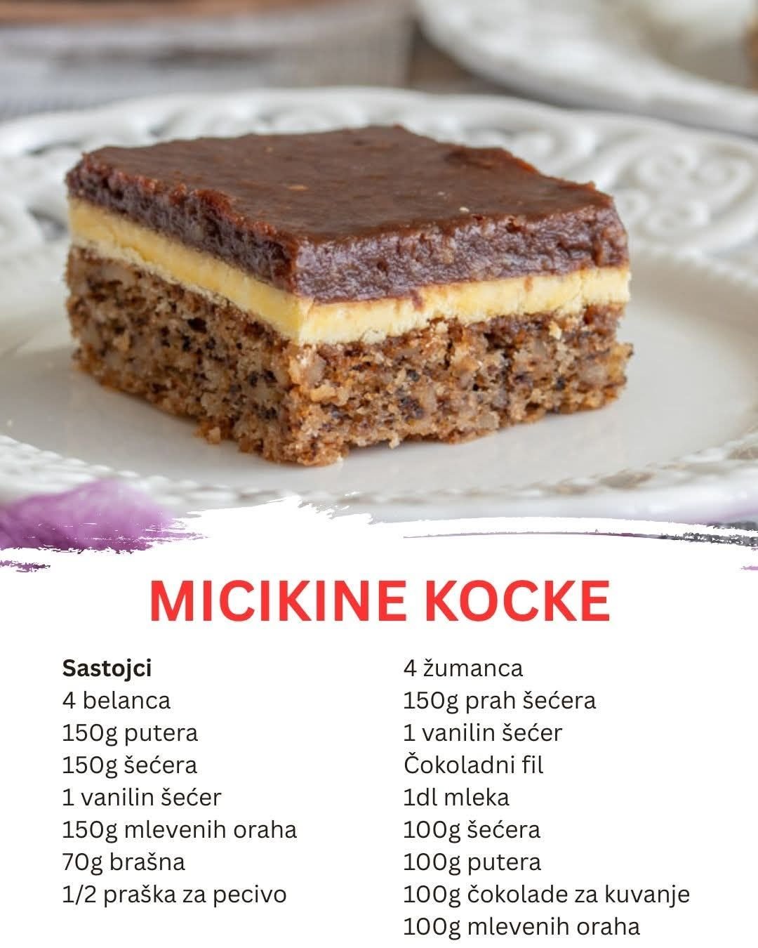 Micikine kocke nisu samo desert – one su podsetnik na vreme kada se kolač pravio s merom, ali i s ljubavlju. Ovaj recept kombinuje jednostavne sastojke sa pažljivim tehnikama kako bi se dobio kolač koji nije samo lep na oko, već i neodoljiv na nepce.