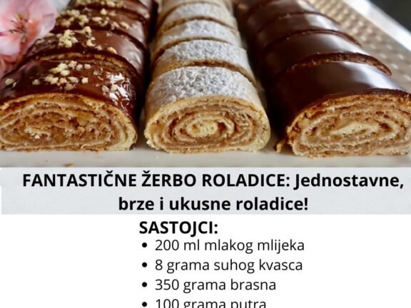 FANTASTIČNE ŽERBO ROLADICE. Jednostavne, brze i ukusne roladice! Sastojci: 200 ml mlakog mlijeka 8 grama suhog kvasca 350 grama brasna 100 grama putra 75 grama secera 1 jaje Nadjev: 300… Read more »