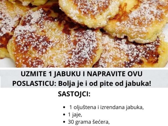 UZMITE 1 JABUKU I NAPRAVITE OVU POSLASTICU: Bolja je i od pite od jabuka! Brza poslastica sa jednom jabukom i jednim jajetom. Potrebno: 1 oljuštena i izrendana jabuka, 1 jaje, 30… Read more »