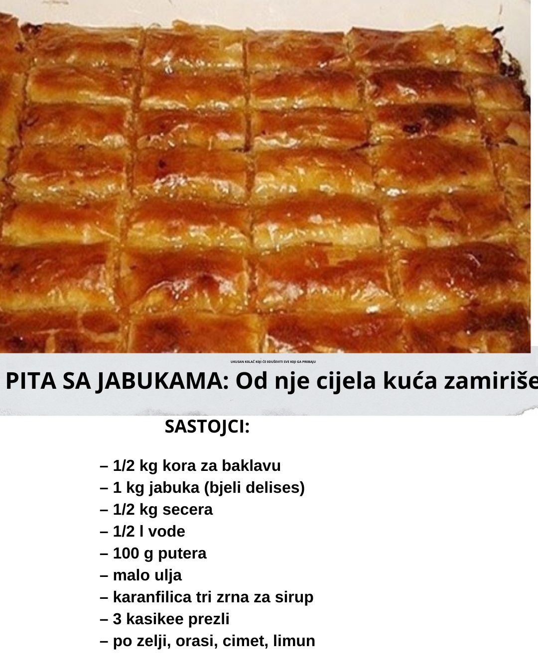 Rastopiti 100 g putera i u njega dodati isto toliko ulja. Jabuke oljustiti, izrendati i spinovati u serpi sa malo secera, na kraju dodati par kasika prezle da upiju visak soka a i zbog sirupa kasnije da kolac bude socniji.