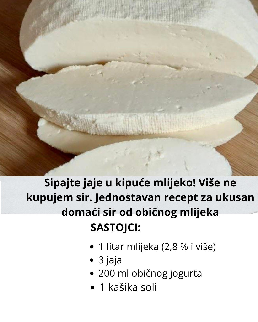 Ako imate mlijeka napravite ovaj ukusan sir. Nevjerovatan recept, za to su potrebna samo 3 jednostavna sastojka koja svaka kuhinja ima.