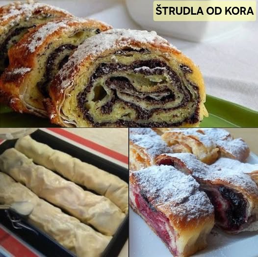 Kao nadev, ja sam stavljala sljive i rogac, s tim da sam za jednu strudlu potopila 100 grama rogaca u 2 dl. toplog mleka pa onda premazala tom smesom poslednju, petu koru. Na isti nacin potopim i mak kada ga koristim kao nadev.