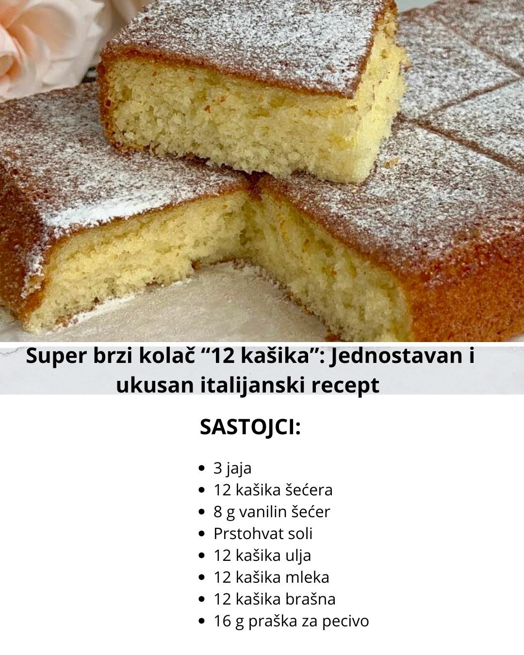 Super brzi kolač “12 kašika”: Jednostavan i ukusan italijanski recept.