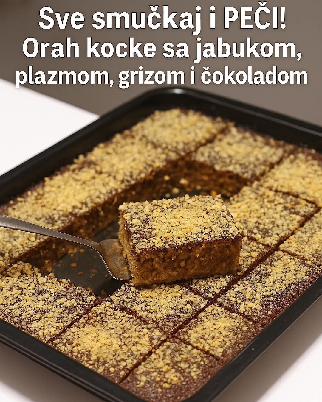 Sve smućkaj i PEČI! Orah kocke sa jabukom, plazmom, grizom i čokoladom – nestane u trenu…