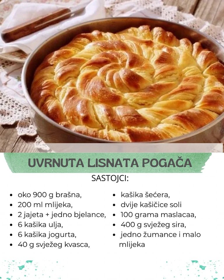 - Pogaču peći oko 45 minuta na 180 °C (u zavisnosti od toga koliko vam je rerna jaka).